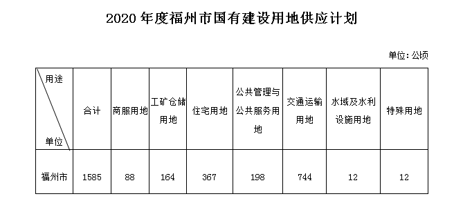 (一)2020年度福州市国有建设用地供应总量控制在1585公顷。