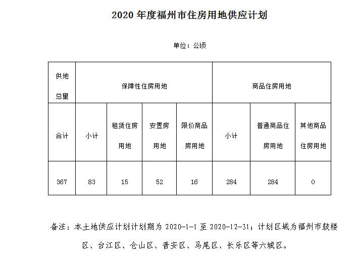 2020年度福州市国有建设用地供应计划