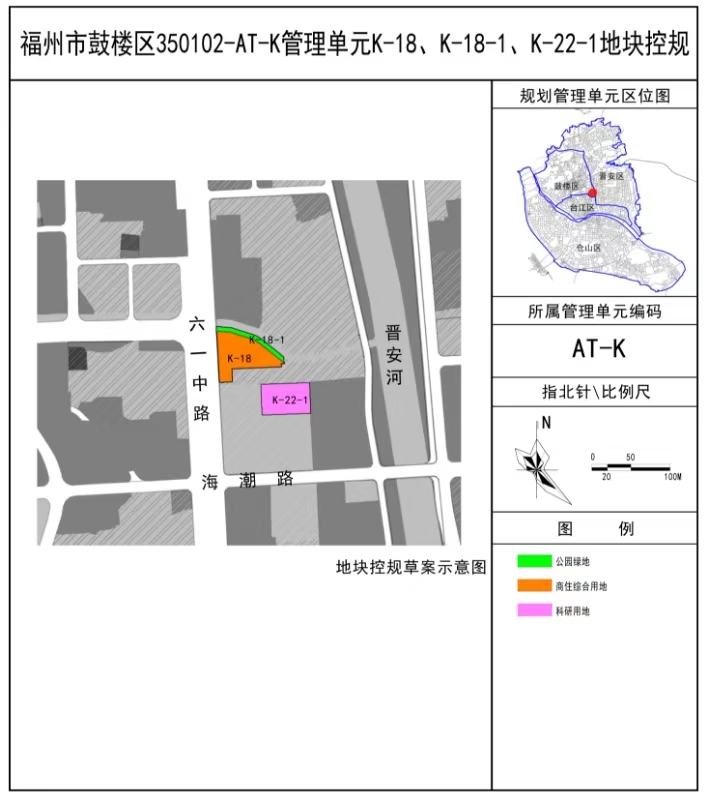 附件:鼓楼区350102-AT-K管理单元K-18、K-18-1、K-22-1地块控规主要内容